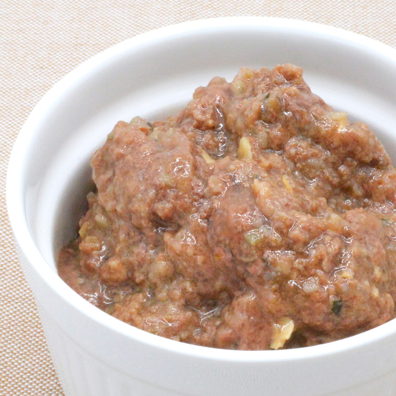 自然の中で自由に育った野馬の上質な赤身肉に、カリウム豊富なビオのズッキーニやγ-リノレン酸の供給源であるボラージ油をプラスしました。ビオリオーブはレシピに使用する動物性タンパク質をひとつだけに絞っているので、パートナーが食べられる味だけを選べたり、ローテーションで食べる楽しさや異なる栄養素を摂り入れたりできます。増粘安定剤・発色剤・着色料不使用です。パートナーのいつものごはんへのトッピングや手作り食の食材としておすすめ。